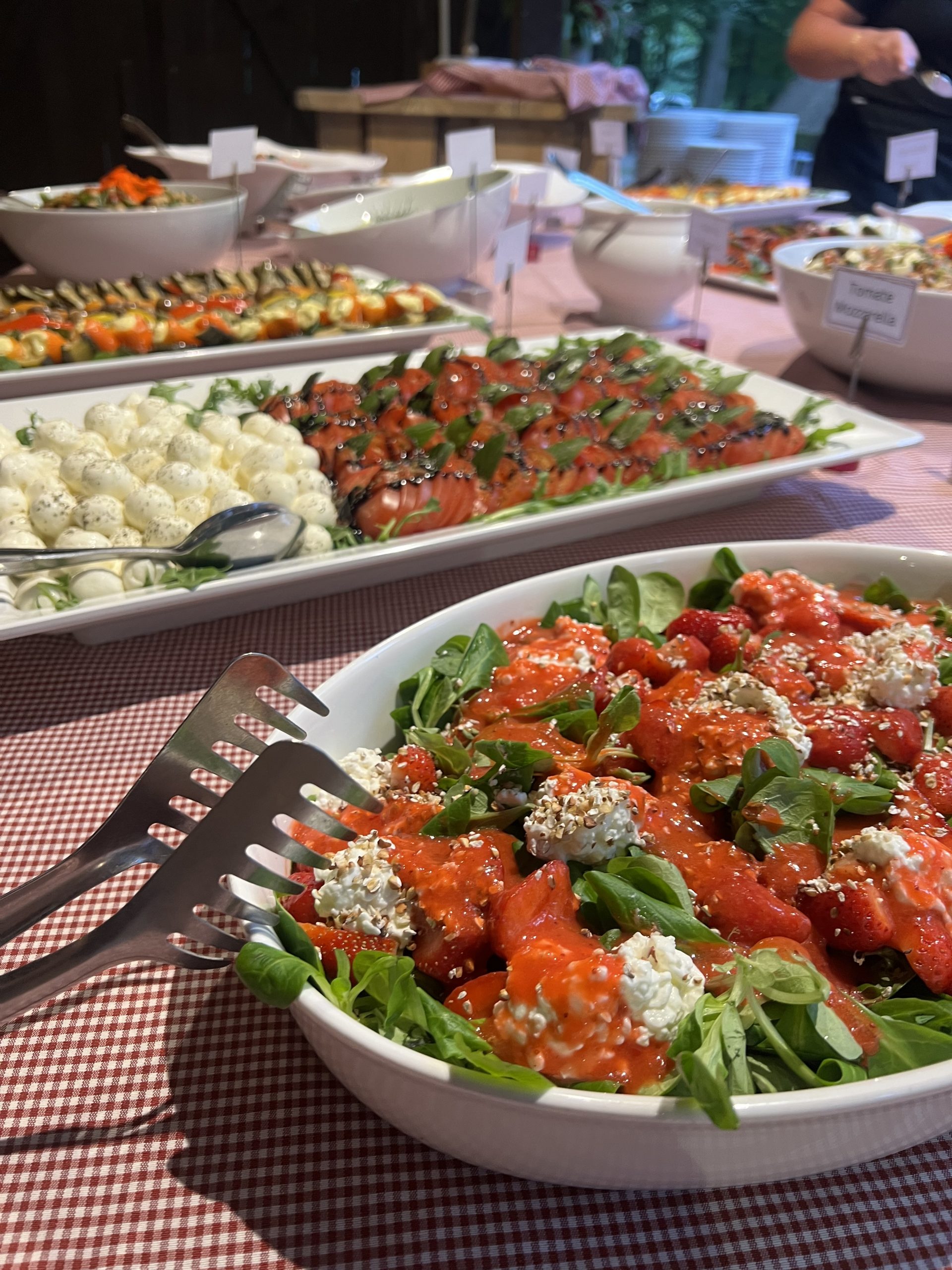 Dazu gibt es vegetarische Spezialitäten vom Grill und saisonale Salatvarianten – bewusst abwechslungsreich und mal anders.