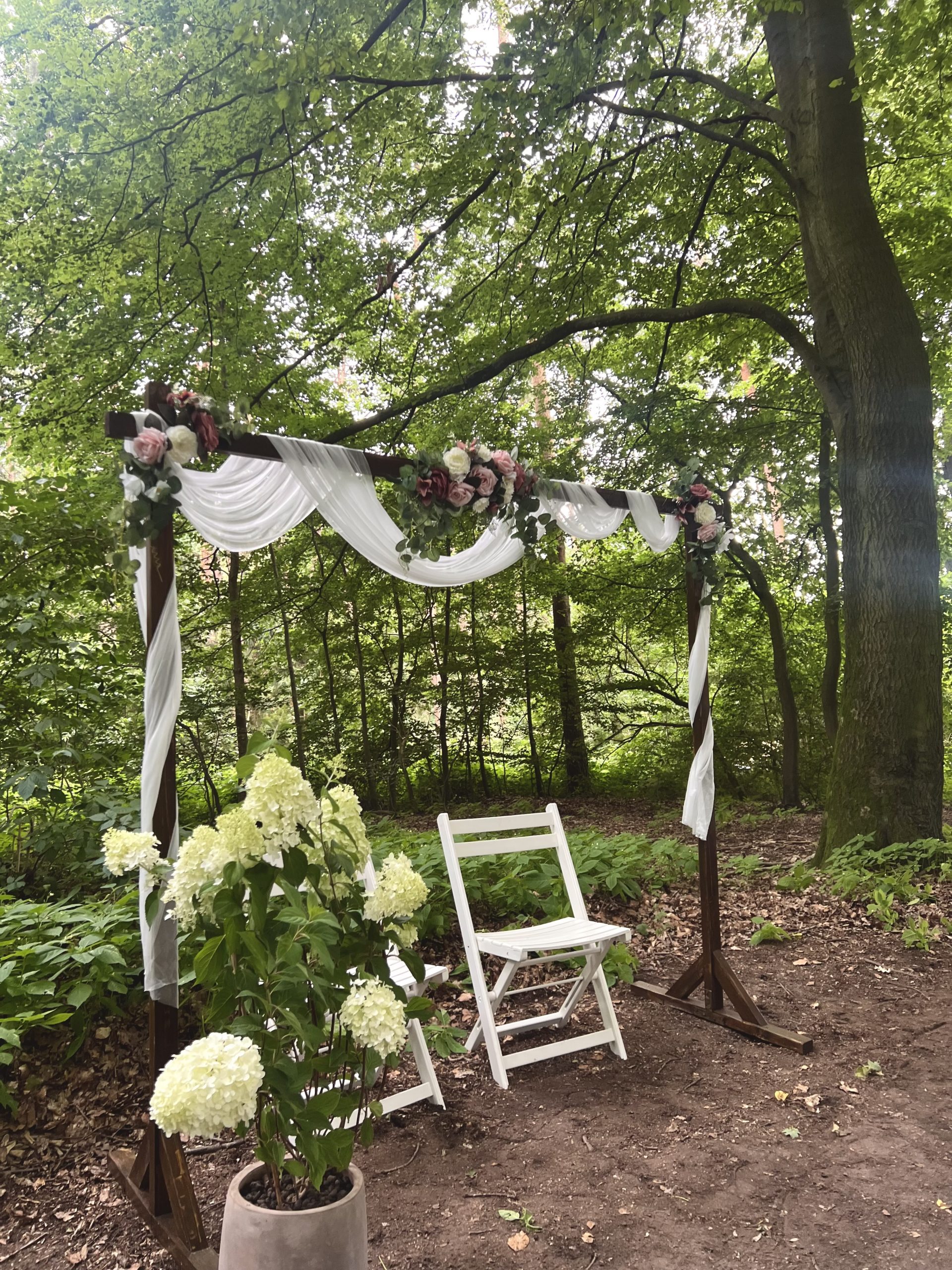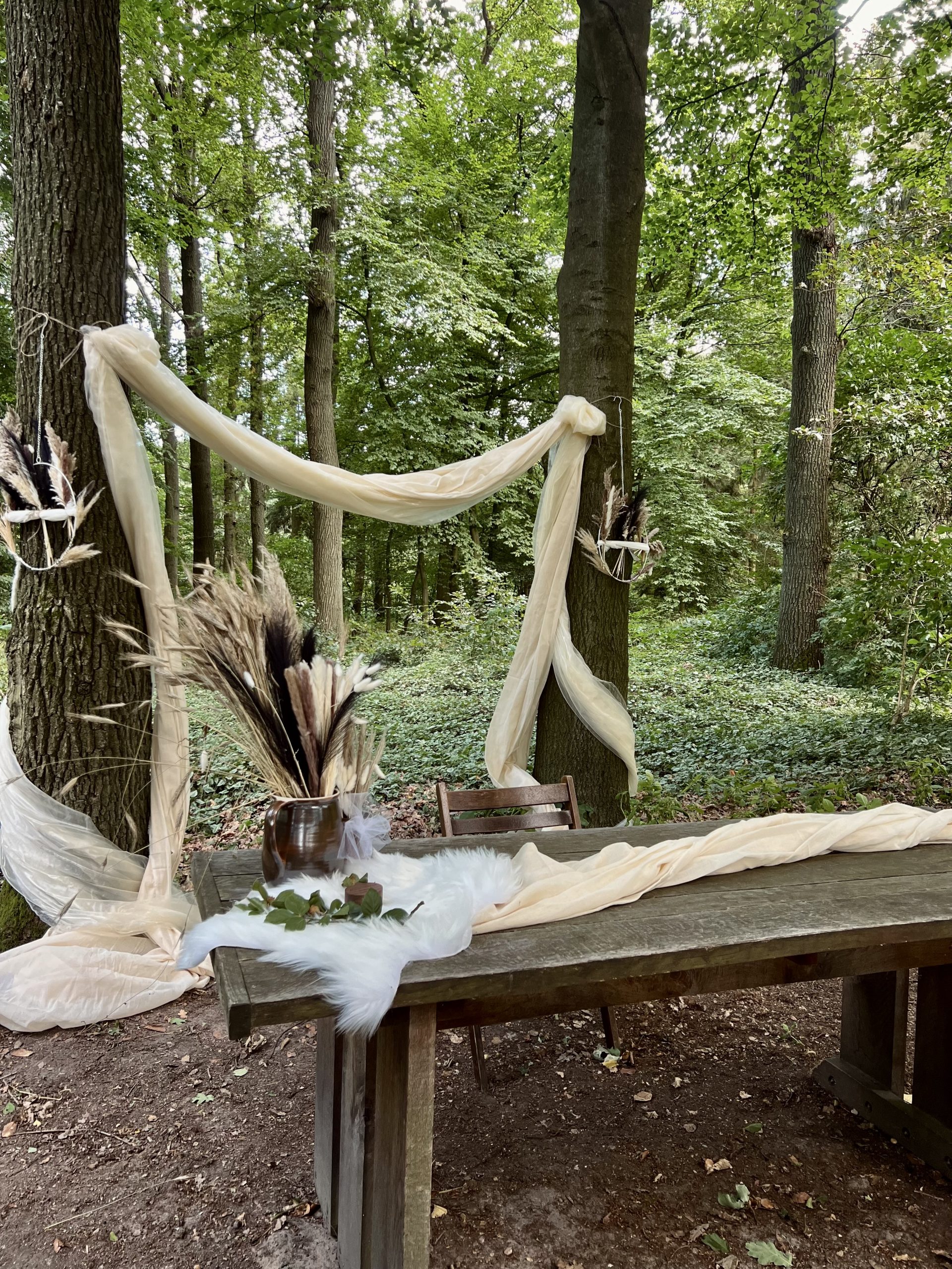 Euer Ja-Wort mitten in der Natur: Die Trauung findet direkt unter alten Baumkronen statt. Umgeben von Wald, Wiesen und Ruhe entsteht ein emotionaler Ort – natürlich, persönlich und ohne Ortswechsel.